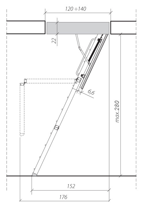 Общая толщина крышки с утеплителем составляет 66 мм., толщина утеплителя - 60 мм., по периметру проложен уплотняющий слой. Благодаря этому крышка абсолютно герметична и эффективно сохраняет тепло в помещении под мансардой. Лестница Fakro Thermo разработана специально для холодного нежилого чердака.