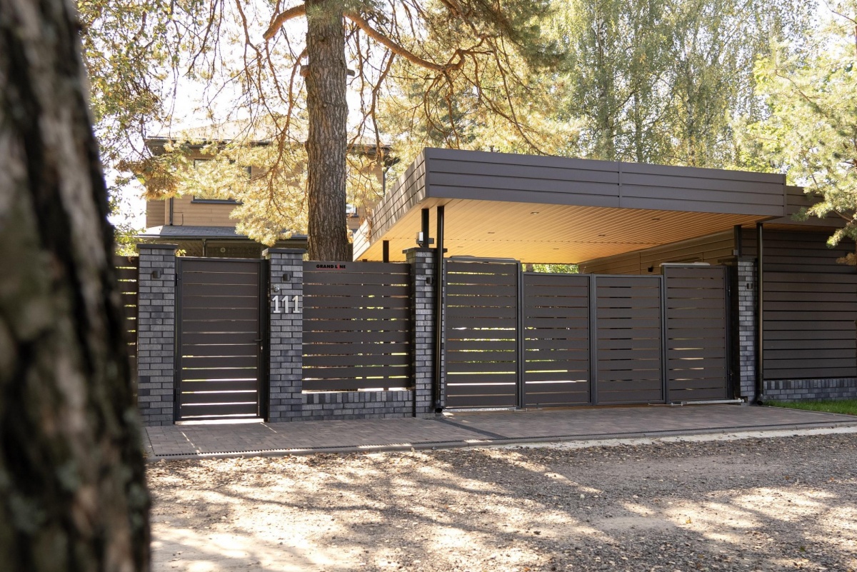 Стильное геометрическое решение для всего участка. На выбор - ламели с гладкими или гофрированными полками.