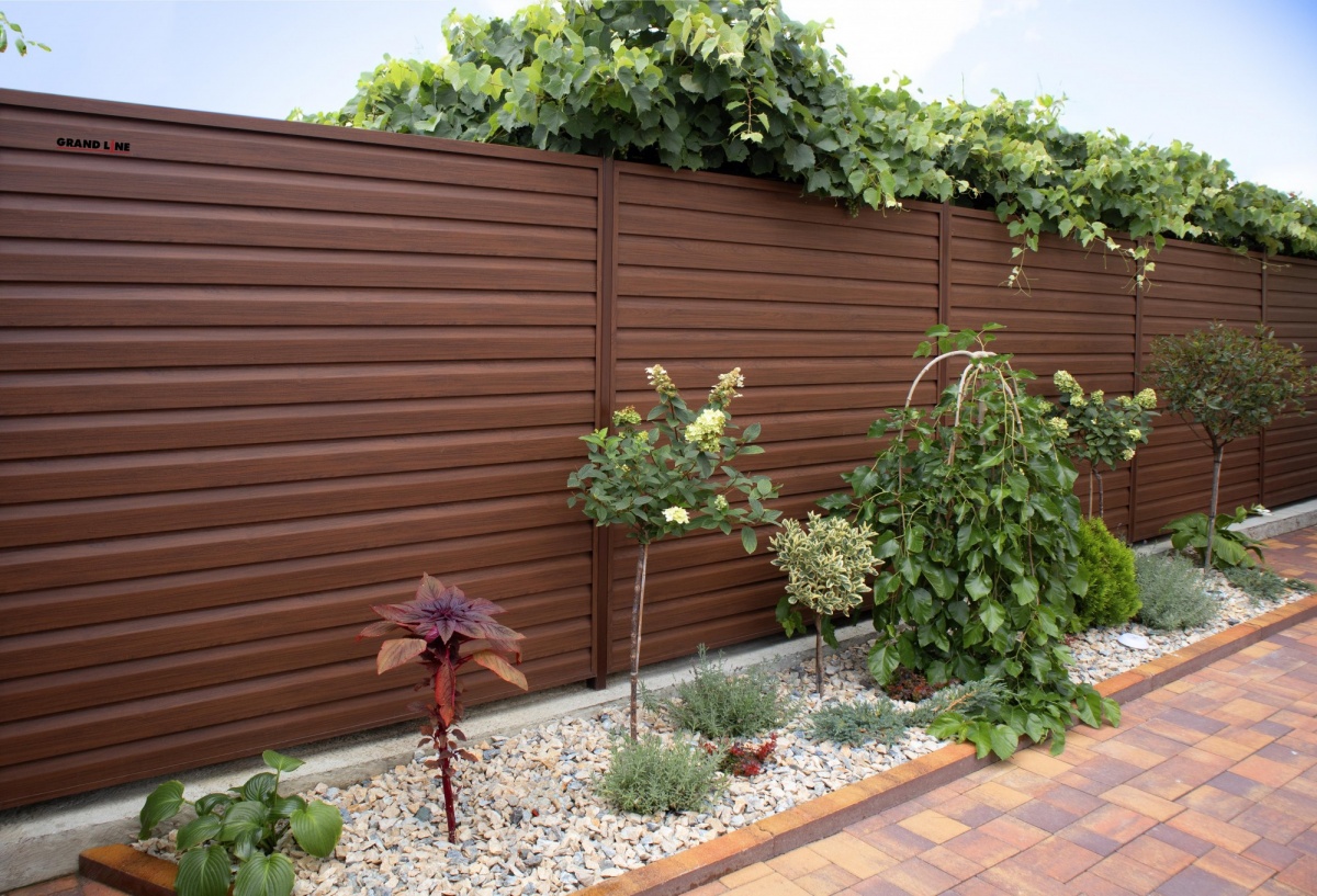 Заборы из металлического сайдинга Grandline изготавливаются из оцинкованной стали с полимерным покрытием, что обеспечивает устойчивость к коррозии и механическим повреждениям. Варианты сайдинга различаются по толщине и профилю, это позволяет подобрать оптимальный уровень защиты и декоративности. Преимущества таких заборов — быстрая установка, малые затраты на обслуживание и широкий ассортимент цветовых решений.