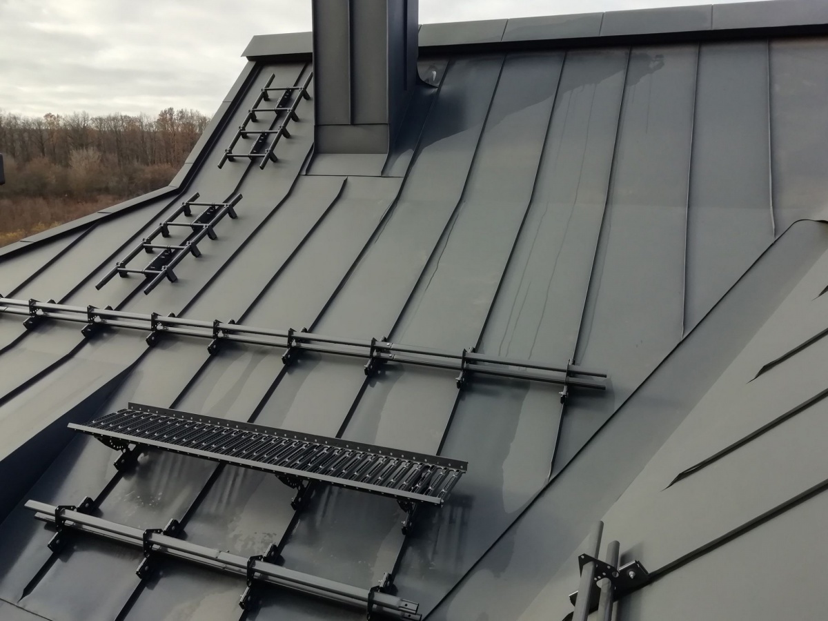 Элементы безопасности кровли нужны не только для защиты самой крыши от негативных факторов, но и для обеспечения безопасности человека, который выполняет инспекцию или ремонт. Они существенно увеличивают срок службы кровли, так как защита от сдвига снега, случайных повреждений и попадания влаги помогает сохранить целостность покрытия и конструкционных элементов. Для ежегодного обслуживания кровли важны несколько основных элементов безопасности: снегозадержатели, лестницы (пристенные и кровельные), переходные мостики и ограждения, которые облегчают доступ к разным участкам крыши и предотвращают аварии.
