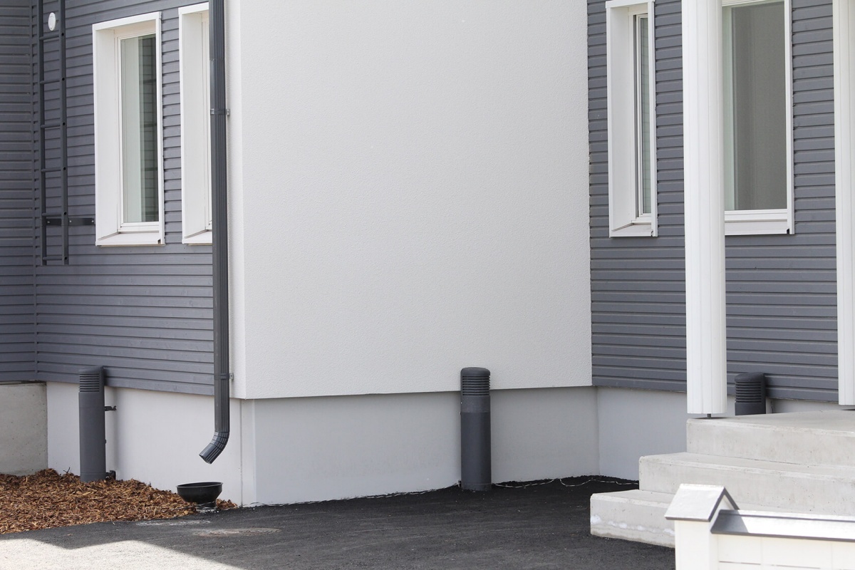 Наиболее эффективная циркуляция воздуха в цокольной части здания достигается при одновременном использовании VILPE ЕСо110 вентилятора для вытяжки радона и VILPE ROSS цокольного дефлектора в качестве приточной трубы.
